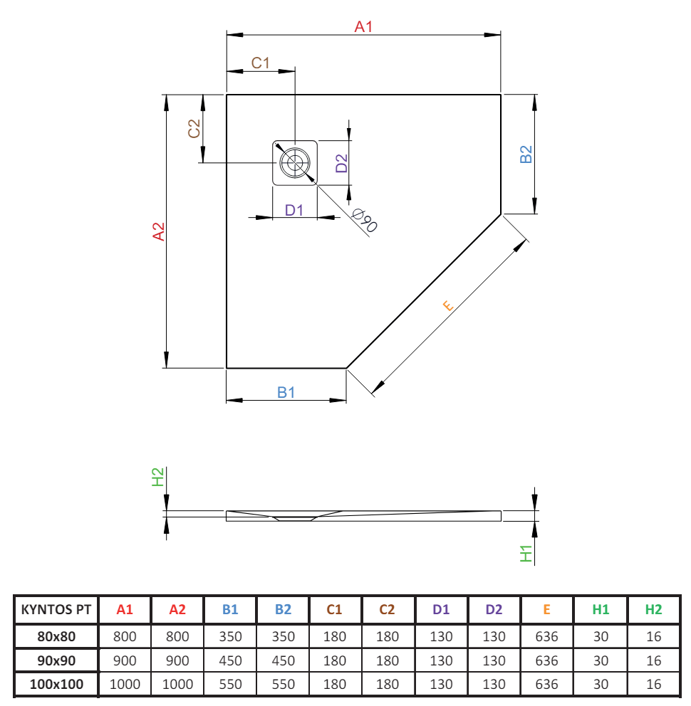 Radaway Kyntos PT sprchová vanička z konglomerátu cement 100x100 cm HKPT100100-74