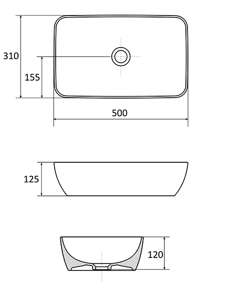 Ravak Uni Slim 500 R umyvadlo na desku bílé keramika XJX01150001