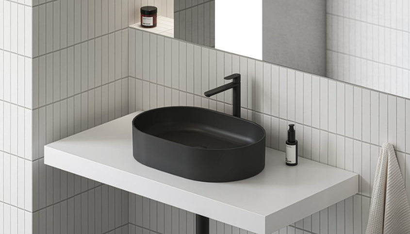 Umyvadlo je určeno k montáži na desku nebo skříňku. Decentně zaoblené hrany této varianty přirozeně vyvažují přísnost ostrých úhlů v koupelně.