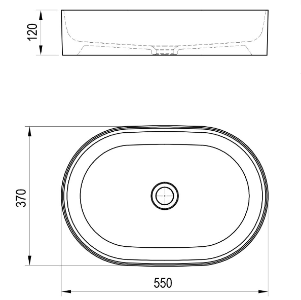 Ravak Uni Slim 550 O umyvadlo na desku keramika matná černá XJX0D155000