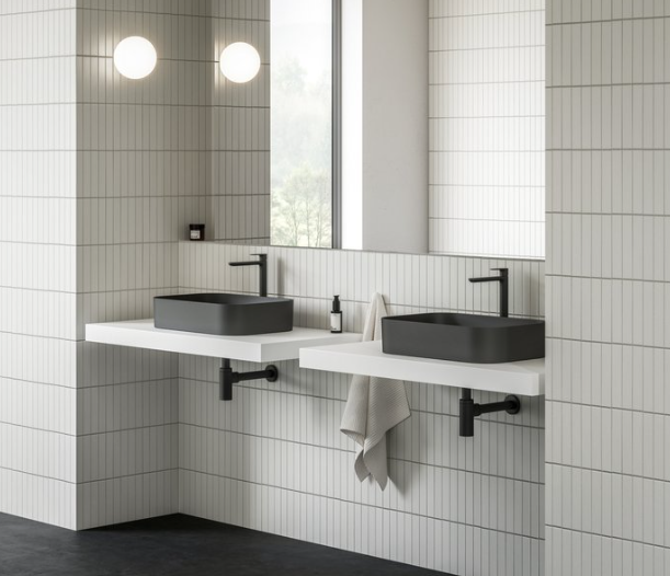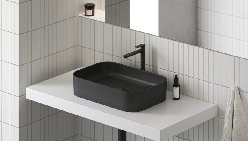 Umyvadlo je určeno k montáži na desku nebo skříňku. Minimalistické umyvadlo je atraktivní kombinací vizuální jemnosti a odolné konstrukce.